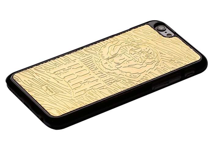 Накладка для телефона покрыта золотом 999 пробы, разработана по стандартам лучших швейцарских часовых брендов, слегка приятно утяжеляет телефон, не способствует появлению помех и имеет центральную фигуру композиции — тигра, который считается очень сильным, мудрым и свободолюбивым зверем .